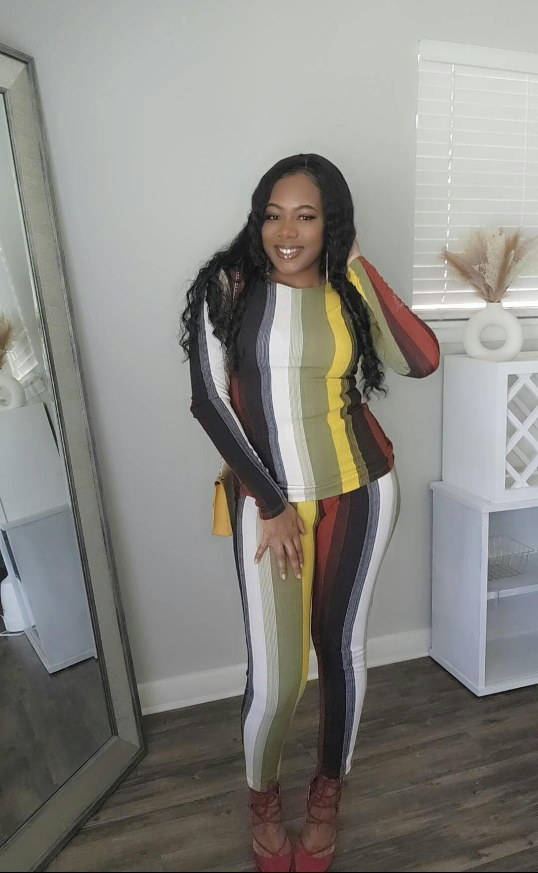 Black Beauty…This set gave me a sophisticated high end polished look when accessorized.. The material was soft and flexible…great addition to my wardrobe